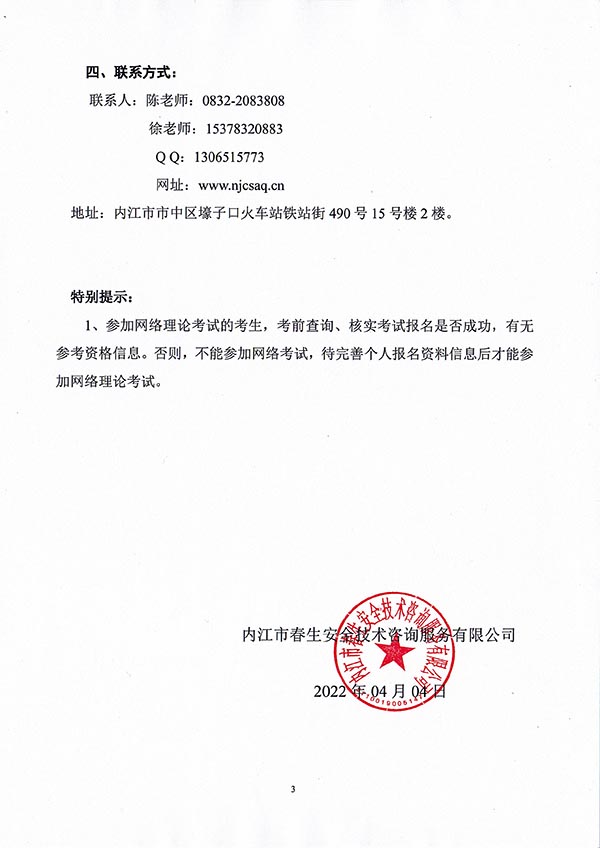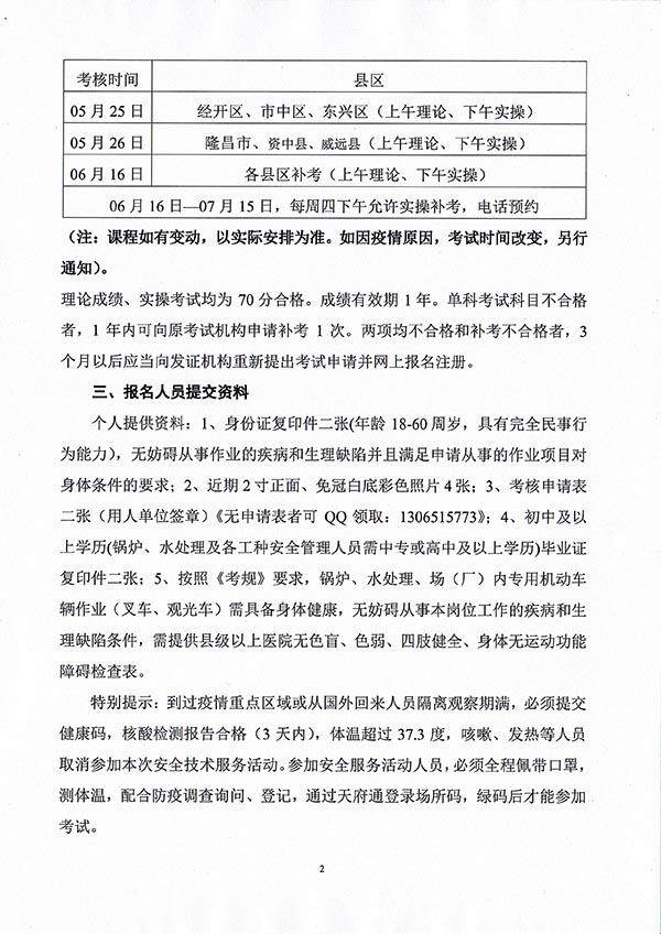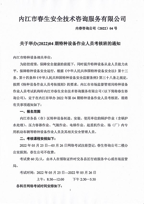 2022年春生公司04期特種設(shè)備作業(yè)人員考核時間安排