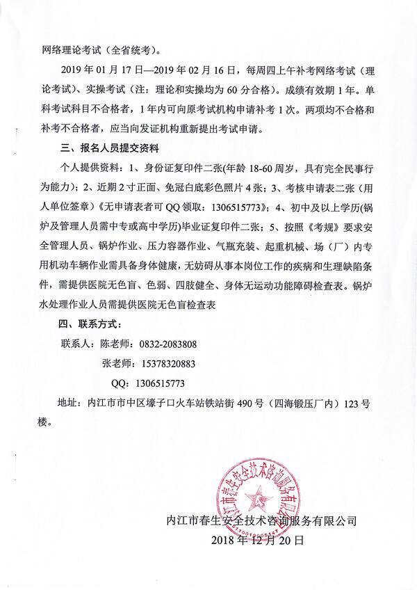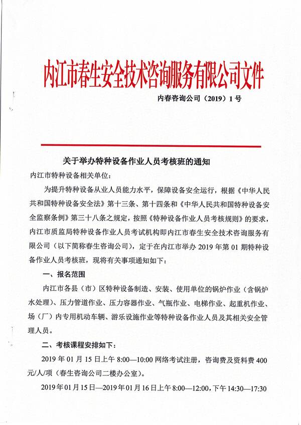 2019年第一期特種設(shè)備作業(yè)人員考核培訓(xùn)班的通知