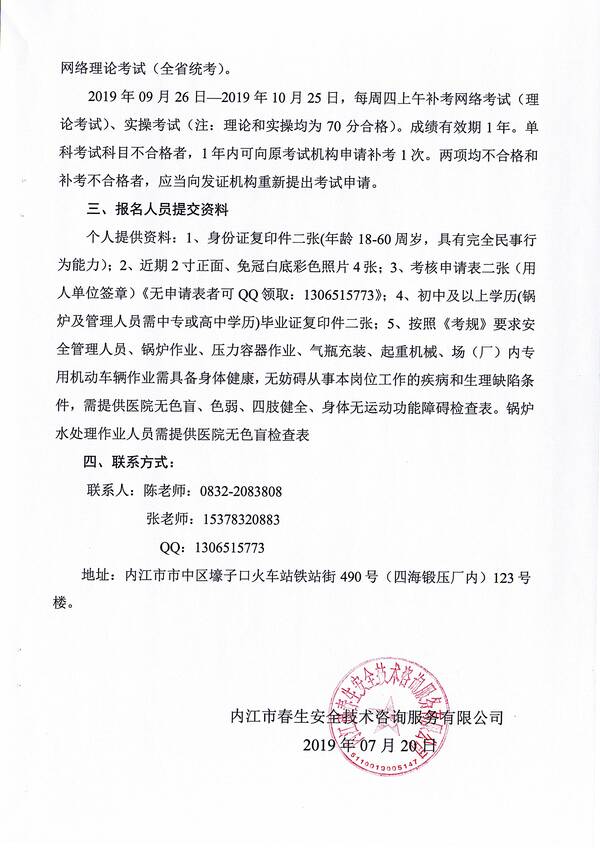 2019年第七期特種設備作業(yè)人員考核培訓班的通知