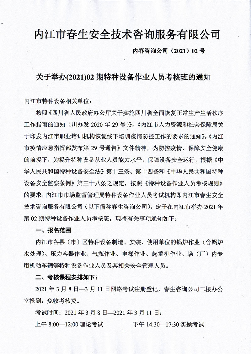 2021年春生公司02期特種設(shè)備作業(yè)人員考核班通知